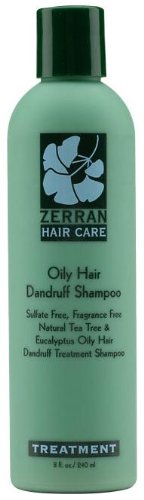 Zerran Oily Hair Dandruff Shampoo is a sulfate-free and fragrance-free shampoo that uses botanical science instead of harsh chemicals to reduce oiliness, flakiness and itching associated with oily hair dandruff. The coffee and tea tree extracts help fight free radicals, and other natural essences soothe the scalp. The sulfate-free and paraben-free formula is scented by natural tea tree oil and eucalyptus oil with no added artificial fragrances.